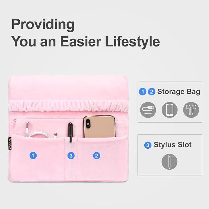 MOSISO Tablet Pillow Stand,Soft Tablet Holder for Lap,Tablet Soft Pad Dock with Pockets&Stylus Slot&4 Viewing Angles Compatible with iPad Pro 12.9,11,10.5,9.7,Air Mini 6,5,4,3, E-Reader, Pink