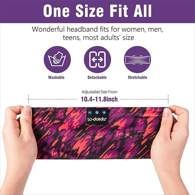 - 【Sleep Headphones with Thin HD Stereo Speakers】LC-dolida Sleep headphones bluetooth headband headphones integrate the earpieces into a soft fabric headband for your extra comfort and the speakers are so thin that you can't feel them even if you press your head against the pillow, perfect sleep headphones for side sleepers. Choose LC-dolida sleep headphones to keep you away from noisy environments and have a sweet dream.