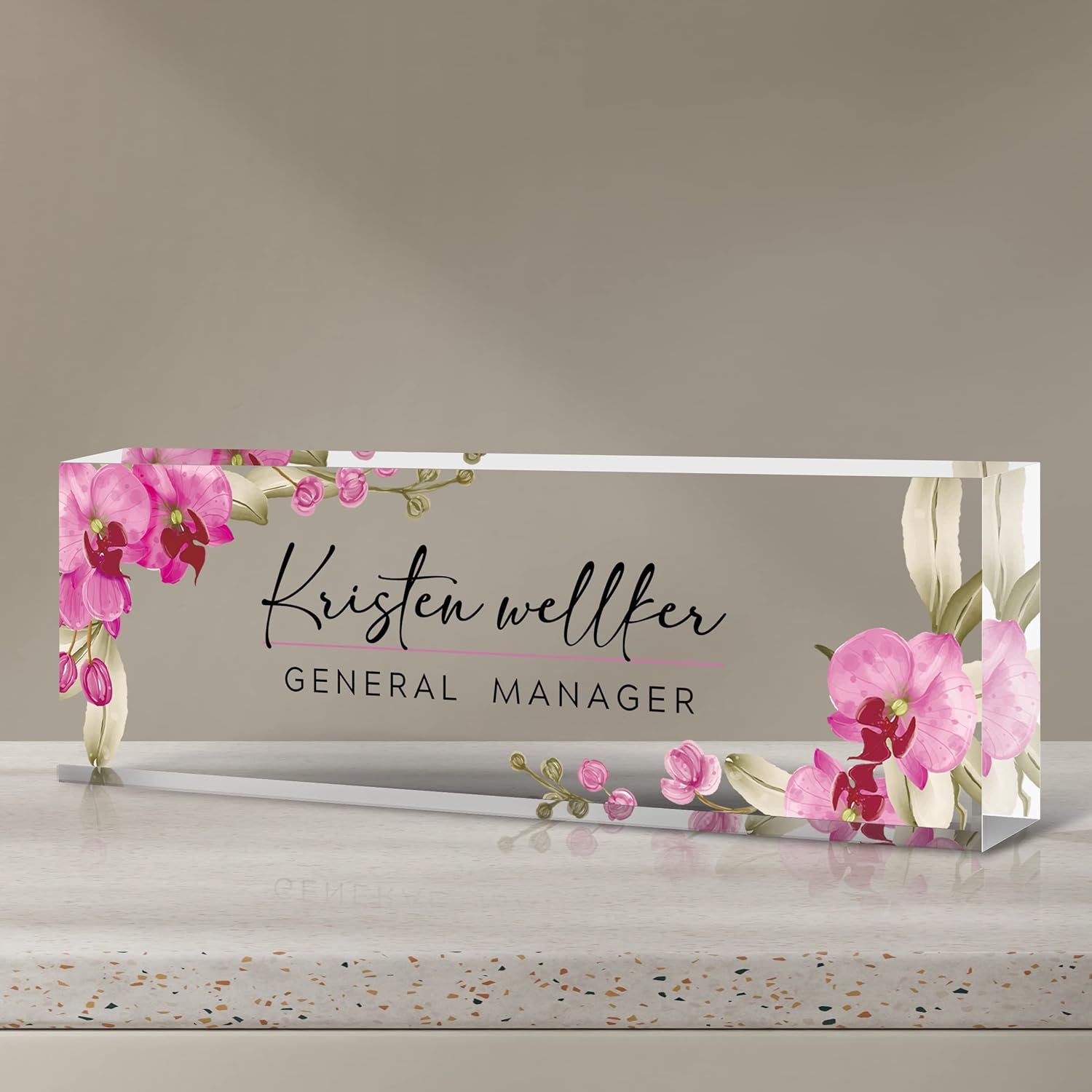 Custom Name Plate for Desk | Personalized Desk Name Plate | Personalized Boss Employee Appreciation Gifts | Acrylic Name Plate Office Desk Accessories (C-Butterfly Orchid)