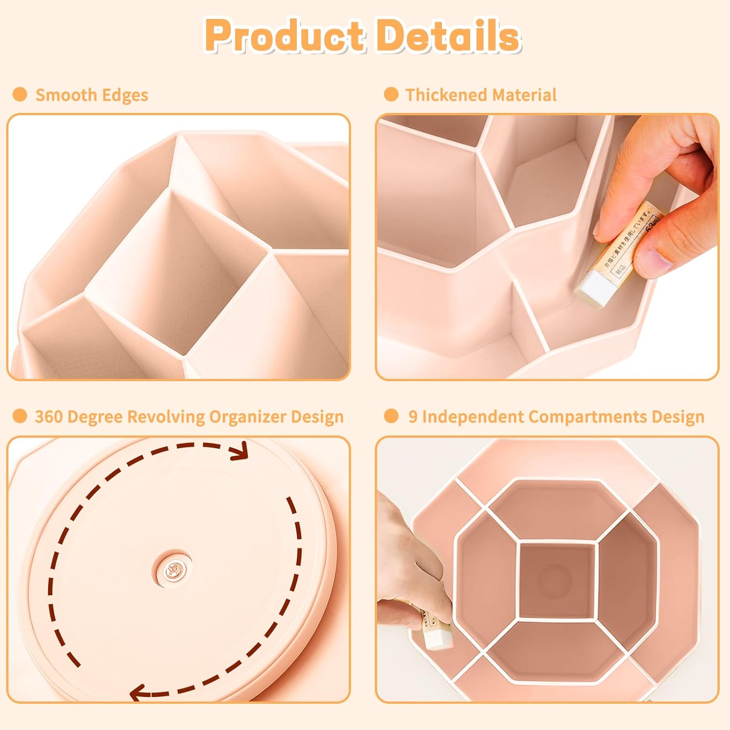 Pencil Pen Holder for Desk,9 Slots 360 Degree Rotating Desk Organizers,Desktop Storage Stationery Supplies Organizer, Cute Pencil Cup Pot For Office, School, Home(Pink)