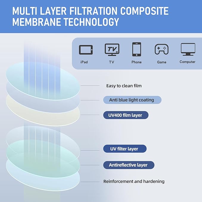 - 【Anti-blue Light】Anti-blue light, with UV400 protection. Anti-glare and can prevent more than 98% harmful blue light. They can reduce eye strain & discomfort caused by prolonged reading while you are using PC, TV, PHONE, LAPTOP or WORKING in fluorescent lights.