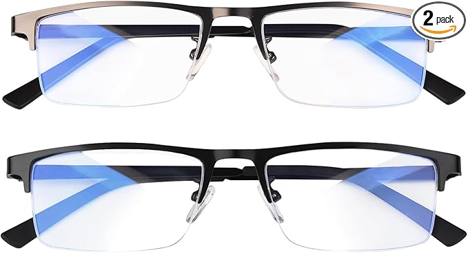 - 【Light Weight Readers】Our upgraded Blue Light Blocking Glasses have thinner metal frame, which makes them more lightweight and fashionable. Lightweight metal frame glasses with spring hinges ensure a comfortable fit without pinching the face. Classic rectangular half-frame design, suitable for men and women, puts no pressure on the nose.