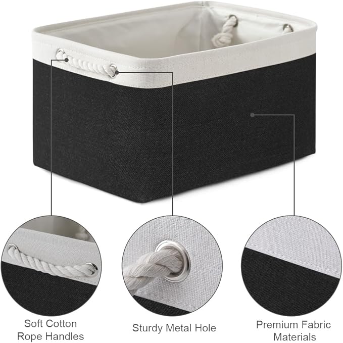 TheWarmHome Storage Basket for Gifts Empty - Large Cubes 3 Pack 15.8x11.8x11.8 inch Storage Bins for Organizing Book Cloth Bathroom Toy (White & Black)