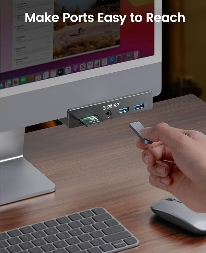 - New Clampable Hub Design: ORICO mountable usb hub designed with adjustable screw allow you to mount monitor screen edge or desk edge thickness from 0.19 to 1.1 inches (5-28mm), It can be firmly fixed on the edge of the desktop or monitor for a semi-permanent mount, and will not shake or move when plugged in or out.The parts in contact with the desktop or monitor are covered with soft silicone pads to avoid scratches.