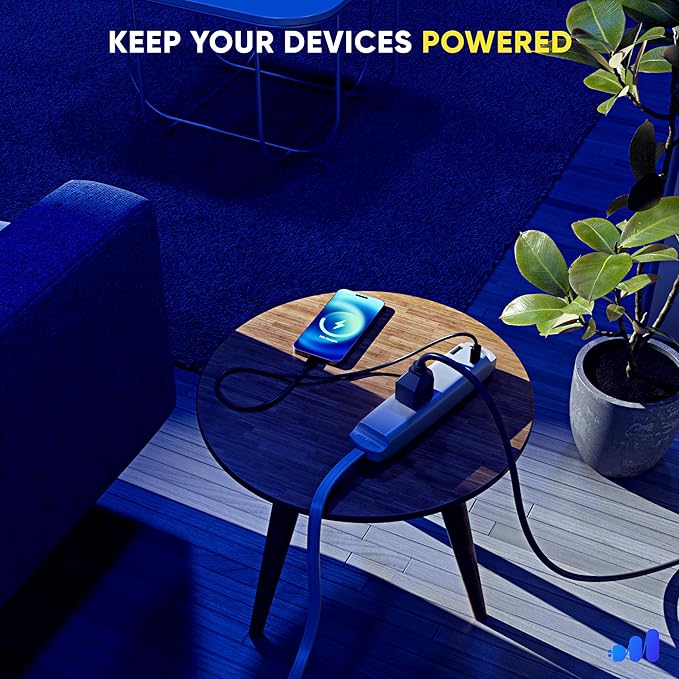 - BUILT-IN LOOP FOR EASY USE AND STORAGE. Low profile extension cord with Built-in loop lets you hang the extension cord while in use or tucked away neatly in storage. Its slim and unobtrusive, ensuring it doesn't disrupt your home's aesthetic