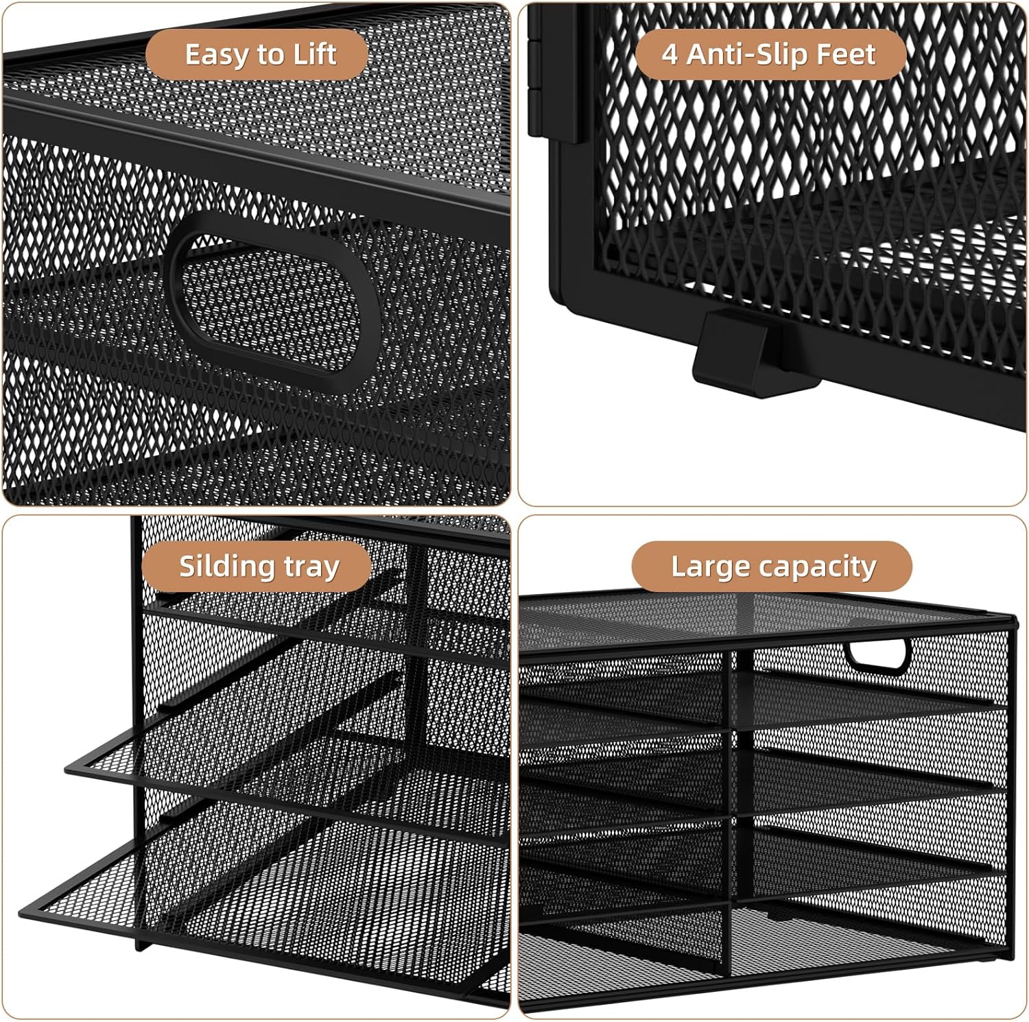 - 【High Quality】The mesh desk file organizer is made of lightweight durable metal mesh and reinforced with a solid steel frame that makes it have long-lasting strength and reliable performance
