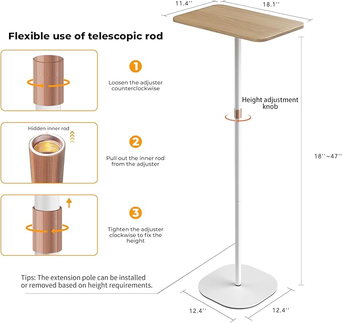 - 【Adjustable Height】Easily adjust 18" to 47" with rotary metal adjuster. Multi-height versatility for sitting or standing use, whether studying, reading or working on a laptop. The extension pole can be installed or removed according to the height needs.