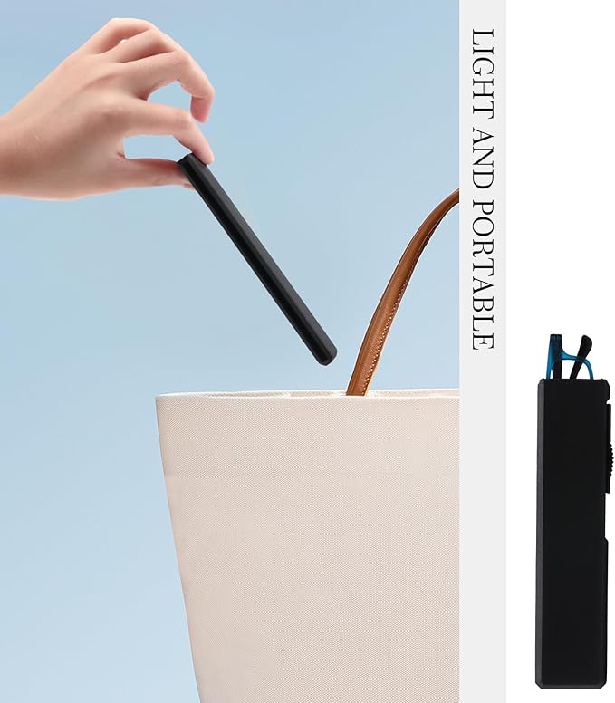 - UNIQUE STRETCHABLE CASE: We have adopted a unique retractable design to minimize the space occupied by the products. All you need to do is press and hold the button to slide it forward, and the glasses will appear.Simple and easy to operate.