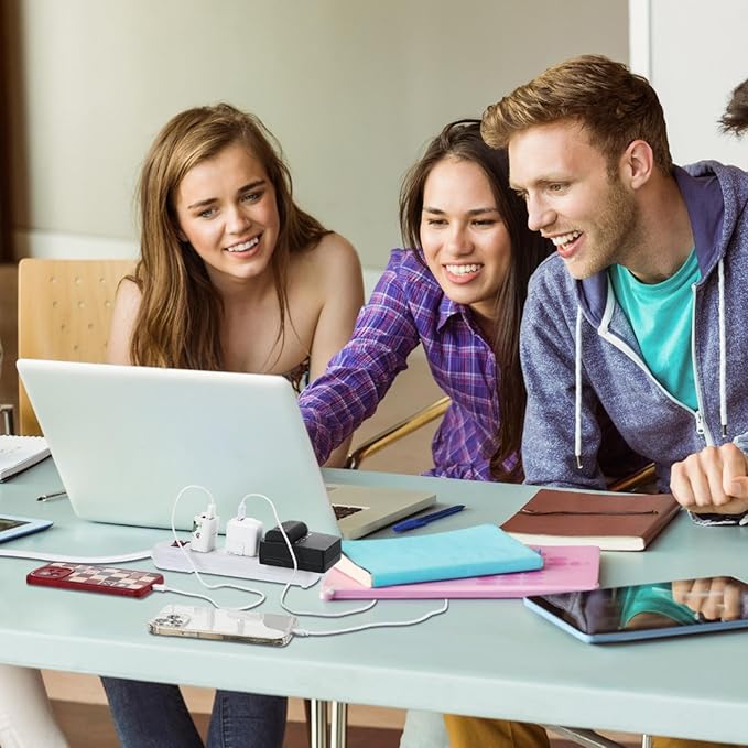 - Overload Protection: the 8.2 ft surge protector power strip is safe to use; The smart circuit with built in voltage sensing can detect the current power, when the rated power is exceeded, the switch will automatically turn off to ensure the safety of your equipment; 1382℉ fireproof PC shell, quality components can also prevent your equipment from overcurrent/ over charging/ overheating