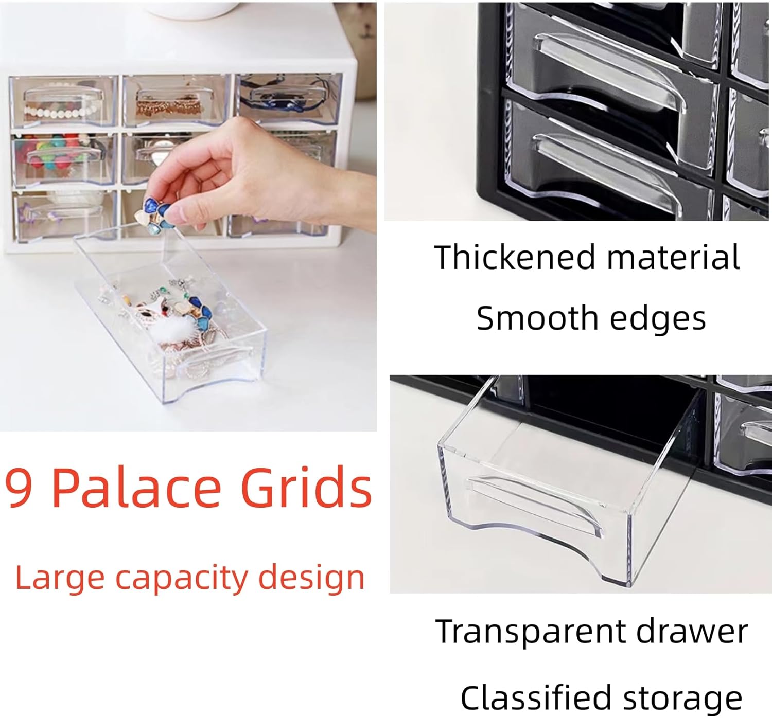 - 【Product Details】Sturdy Black plastic with 9 transparent drawers, the drawers can open independently and removable, Plastic organizer box is can be mounted on wall