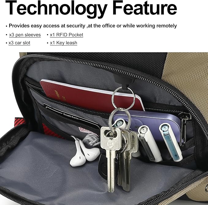- Effortless Packing & Ample Storage: Packing has never been easier. Five exterior pockets provide quick access, while the spacious main compartment holds up to 5 or 7 days' worth of clothes. Your laptop stays safe in the padded compartment, and thoughtful details like pen sleeves, card slots, a key leash, RFID pocket, and hidden security pocket keep you organized and worry-free