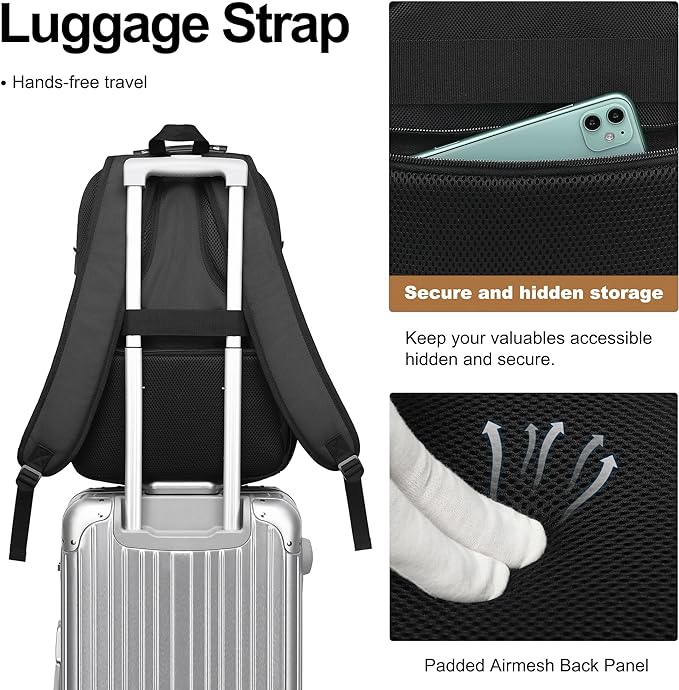 - Effortless Packing & Ample Storage: Packing has never been easier. Five exterior pockets provide quick access, while the spacious main compartment holds up to 5 or 7 days' worth of clothes. Your laptop stays safe in the padded compartment, and thoughtful details like pen sleeves, card slots, a key leash, RFID pocket, and hidden security pocket keep you organized and worry-free