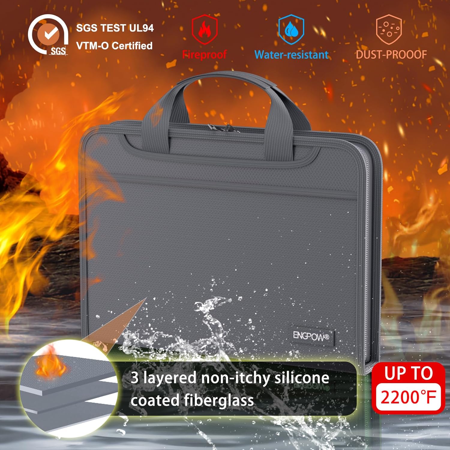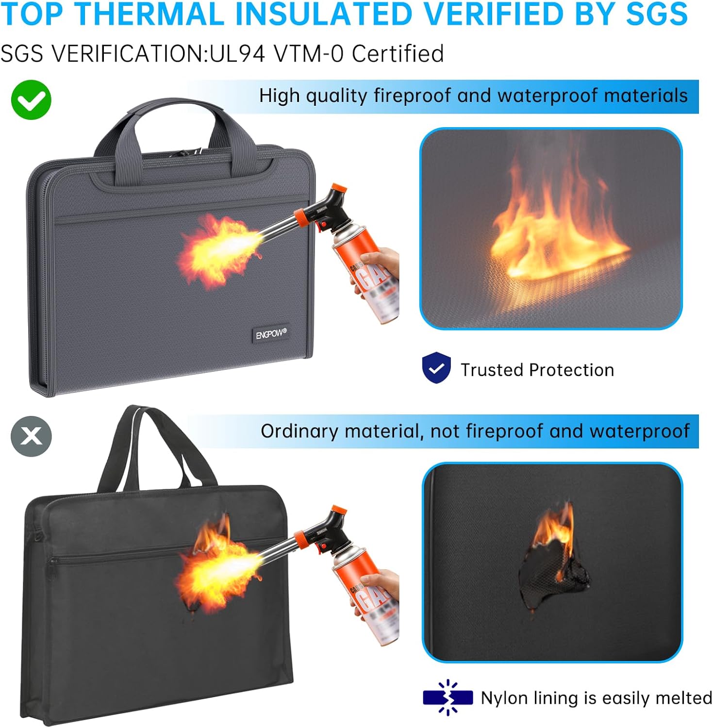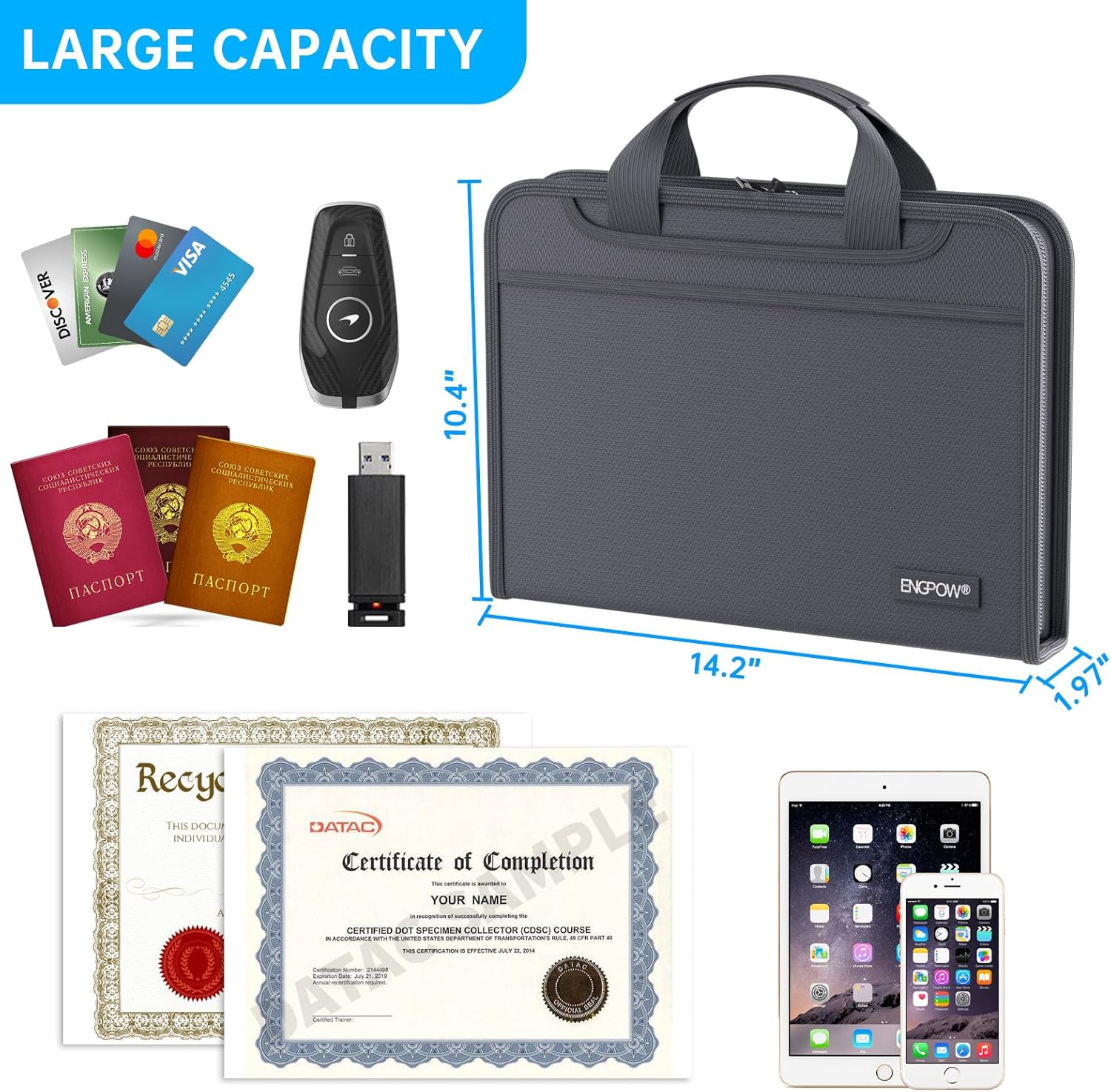 - High-Quality Materials: Protect your files with ENGPOW fireproof accordion file organizer.It is made of 3-layered non-itchy silicone-coated fiberglass which withstand the temperature up to 2200โ.It has been passed by SGS TEST(UL94 VTM-0 Certified).Fireproof File Folder is fireproof๏ผWater-resistant,which can effectively protect your important documents in a fire,flood,and wet weather. They will further keep your files intact.Giving you time to save your important documents when disaster strikes