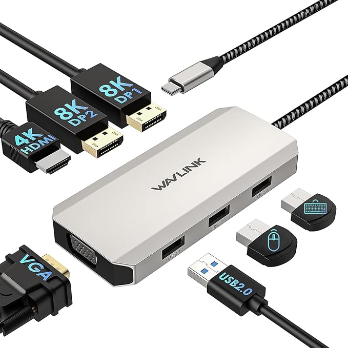 - Displayport Docking Station - Our docking station designed with four display connectivity options, including 1 HDMI, 2 DisplayPort, and 1 VGA port. What can it do for you? From online conferences and stock business to code writing and office multitasking, you can do it together. Unlock the full potential of your workspace! Note-please be aware of the maximum number of monitors your computer can support
