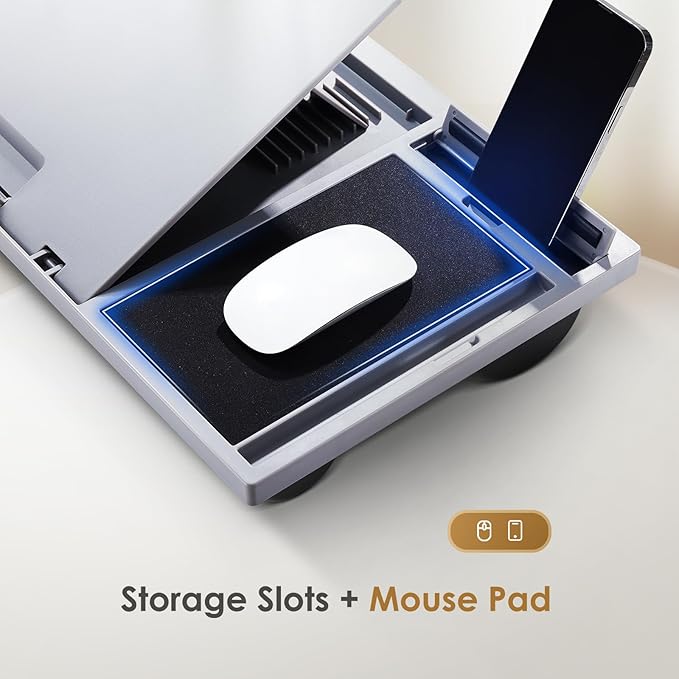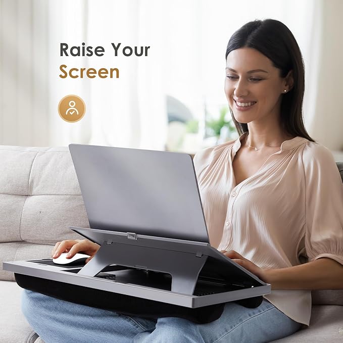 LORYERGO Adjustable Laptop Desk with Cushion, Mouse Pad & Cellphone Slot - Laptop Stand for Bed & Couch, Riser for Home & Office (Grey)