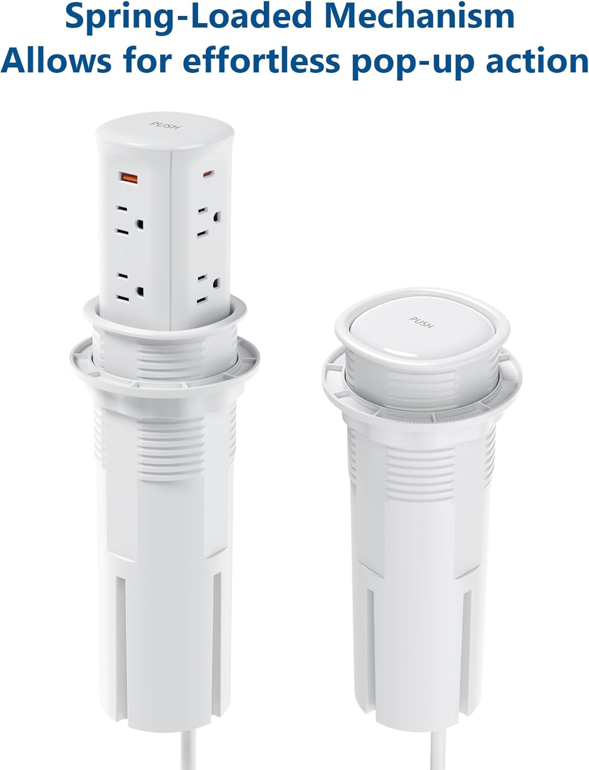 - 【Easy Installation】Jgstkcity pop up outlet fits a 3-1/8 inch (80mm) hole size,and has a built-in spring-loaded pop-up mechanism, simply press in the top to pop the unit up for use.Cut a 3-1/8 inch (80mm) hole, slide the outlet body in, and tighten the ring. Set up easily in your home, kitchen, office, or conference room.