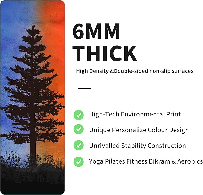 nuveti Yoga Mat Print Extra Thick TPE Non Slip Fitness Exercise Mat with Carrying Bag,72"x24" Extra Thick 6MM Exercise & Workout Mat for Yoga, Pilates Fitness and Floor Exercises