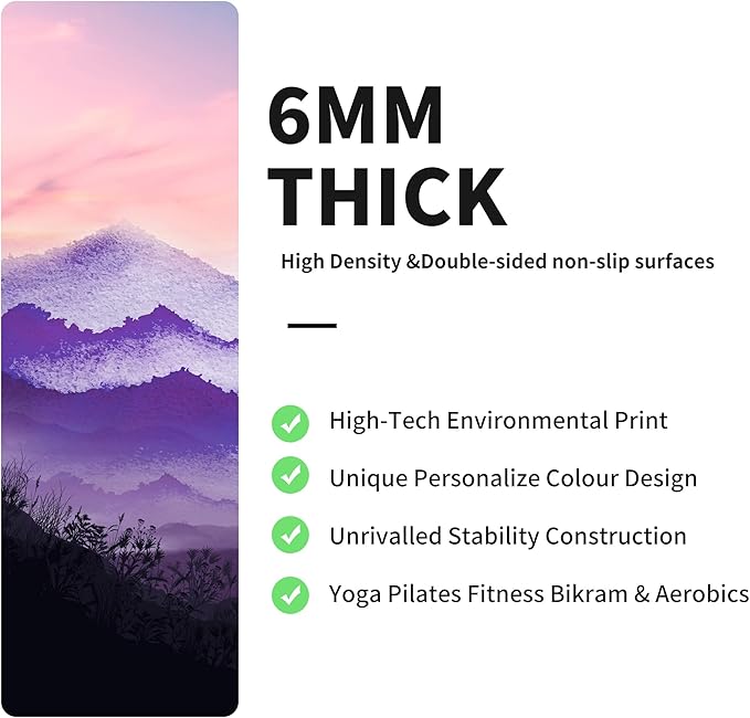 nuveti Yoga Mat Print Extra Thick TPE Non Slip Fitness Exercise Mat with Carrying Bag,72"x24" Extra Thick 6MM Exercise & Workout Mat for Yoga, Pilates Fitness and Floor Exercises