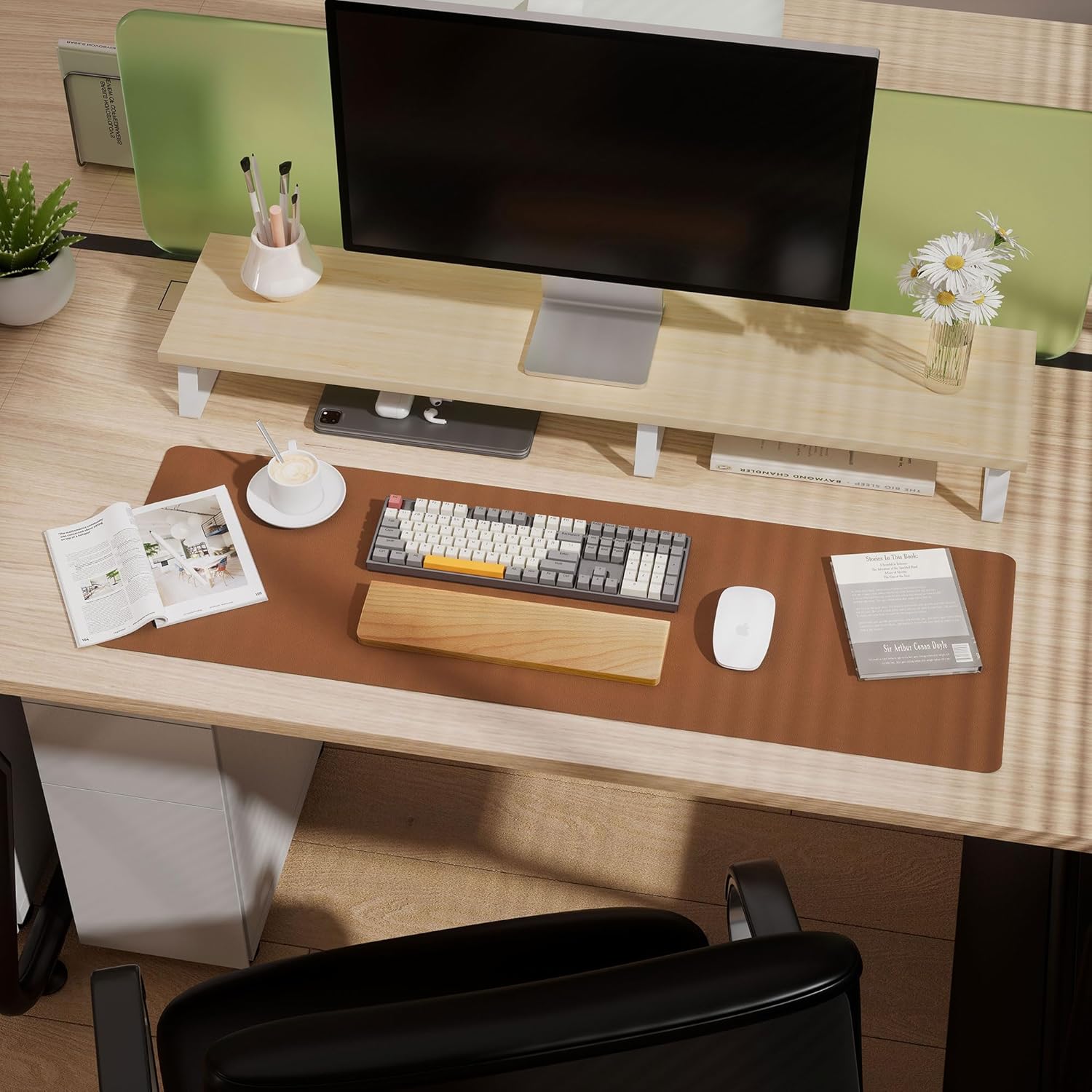 Aothia Leather Desk Pad Protector - Large Mouse Pad, Office Mat, Non-Slip PU Leather Blotter, Laptop Desk Pad, Waterproof Writing Pad for Office and Home (Brown, 38" x 13.7")