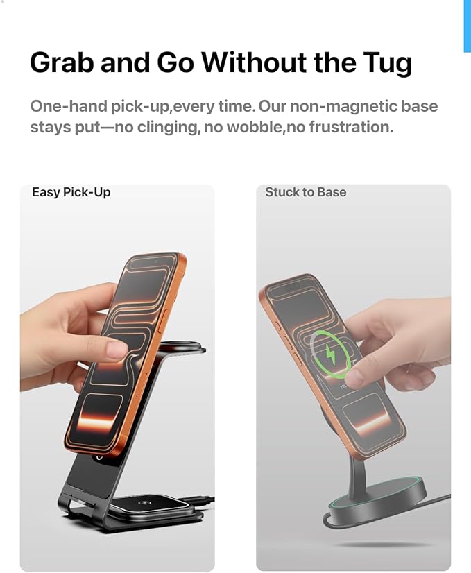 - Broad Compatibility: This wireless charging stand supports models from iPhone 8 to 17 Pro Max, AirPods 2nd gen and newer, and Qi-enabled devices. The watch pad is only compatible with Apple Watch