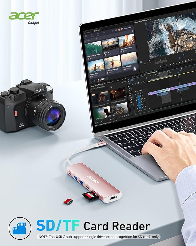 Acer USB Hub, 7 in 1 USB C to HDMI Multi-Port Adapter, 2 USB 3.1 GEN1 and 5Gbps Type-C Data Port, 4K HDMI Port, PD 100W Charging, SD Card Reader, for iPad Pro MacBook Pro Acer Laptops and More (Pink)