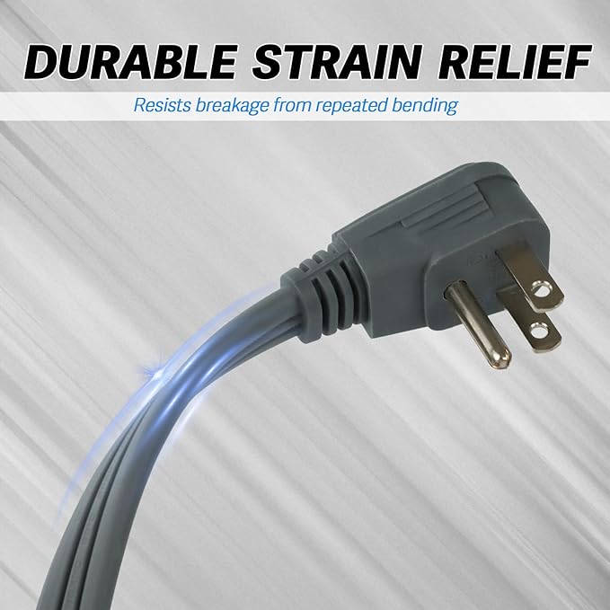 - Space Saving - Flat plug extension cord allows you to situate furniture against the wall safely and conveniently.