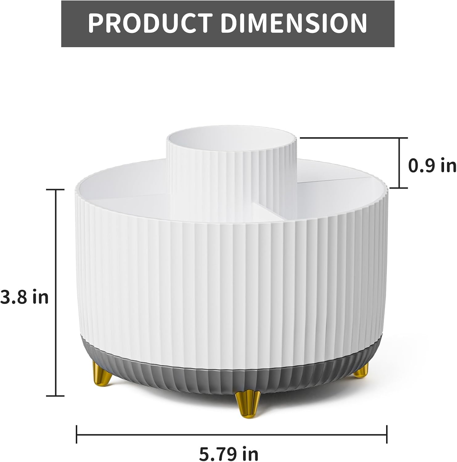 Marbrasse Desk Organizer, 360-Degree Rotating Pen Holder, Desk Organizers and Accessories with 5 Compartments Pencil Holder, Art Supply Storage Box Caddy for Office, Home (White+Grey)