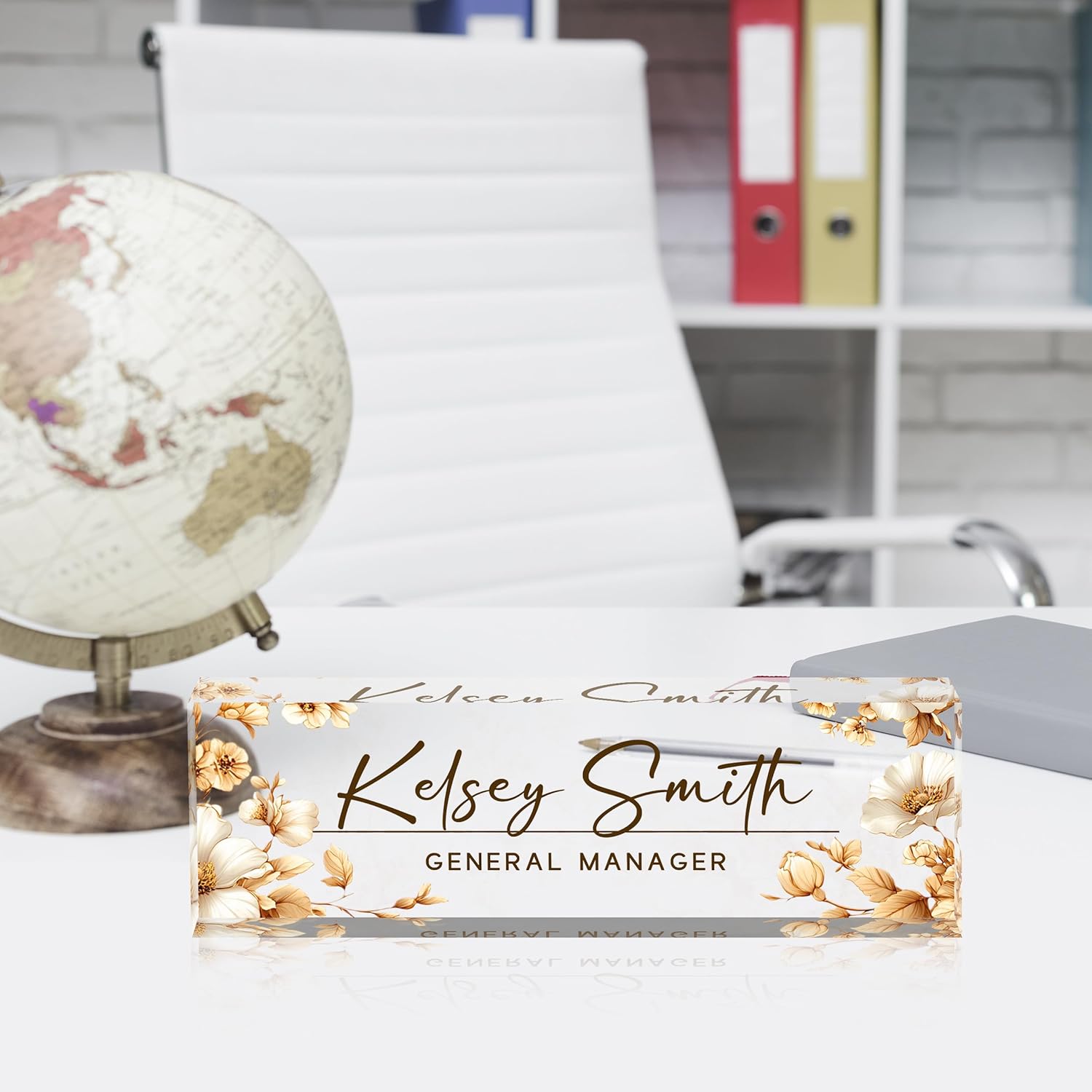 Custom Desk Name Plate Personalized, Acrylic Name Plate for Desk, Office Desk Decor for Women and Men, Employee Appreciation Gifts Office Gifts for Boss, Manager, Teacher, Nurse