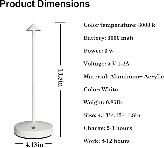 - Minimalist Design: The appearance of cordless table lamp adopts simple candle design, itβs made of lightweight aluminum body,anti-skid base,which is portable,persistent,suitable for dinner table and desk,nightstand; This portable table lamp combining artistic aesthetics, elegant atmosphere and excellent craftsmanship, simple design, very fashionable and warm lighting