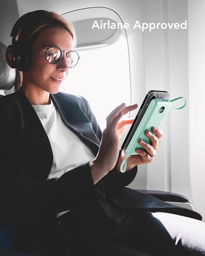 - 22.5W Hyper Speed Charging:Supercharge your iPhone 16 to 50% in just 30 mins! 22.5W USB port fast charging, this travel-ready lightweight power bank keeps your devices fueled faster than ever. Perfect for busy travelers who need instant power boosts between flights or adventures.