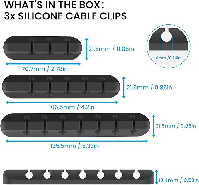 - MAKE DESK CLEAN & ORGANIZED: Tired of all those cables and cords around your computer, cell phone, or in the car? These cable keepers are perfect gifts. Suitable for cables 6mm or less including headphones, chargers, USB cables, power cords, laptop and audio wires, etc