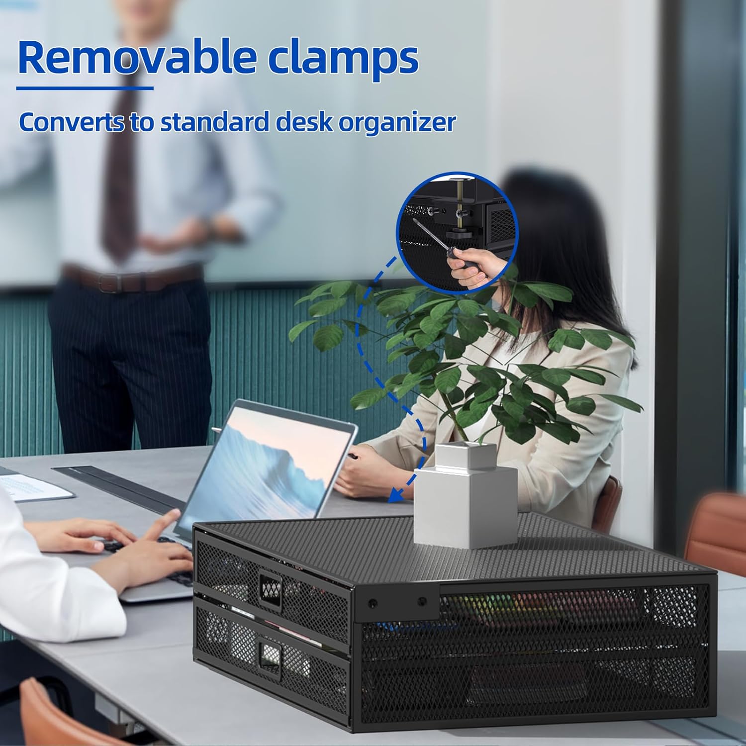- EASY TO INSTALL: Our Under Desk Storage Organizer Is Ideal For Office Desks, Living Room Table, Kitchen Islands And Dining Tables. No Other Tools Required, Just Attach The Drawers To The Desk By Fixing The Clamps And Then Start To Use. If You Have Further Concerns About The Hanging Desk Organizer, Please Feel Free To Contact Us.