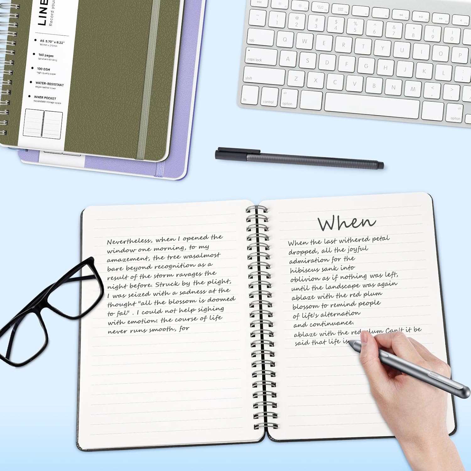 - 160 Pages A5 Notebook - This medium 5.7 x 8.2 inches A5 lined journal notebook features a waterproof green faux leather cover, 8mm space classic college ruled notebook, total of 160 pages. The professional durable water-resistant plastic hard cover will protect your notebooks, which have oil-resistant and anti-bending properties, effectively protecting the internal paper of the journal and providing a comfortable writing surface.
