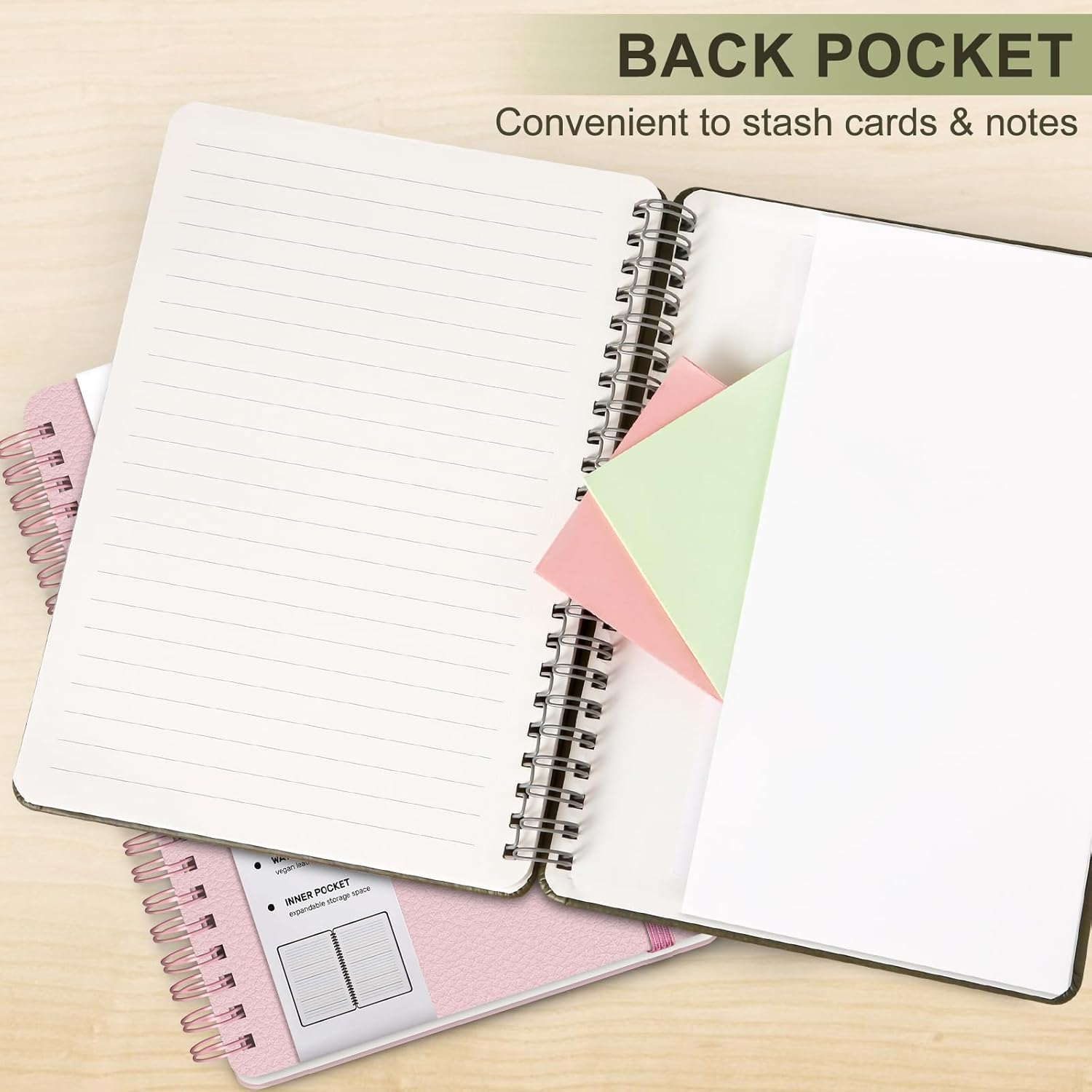 Lined Spiral Journal Notebook, A5 Hardcover Leather Notebook for Work, 5.7''×8.2'', 100GSM Thick Paper Spiral Bound Journaling Notebooks for Women & Men Office School Note Taking Business, Green