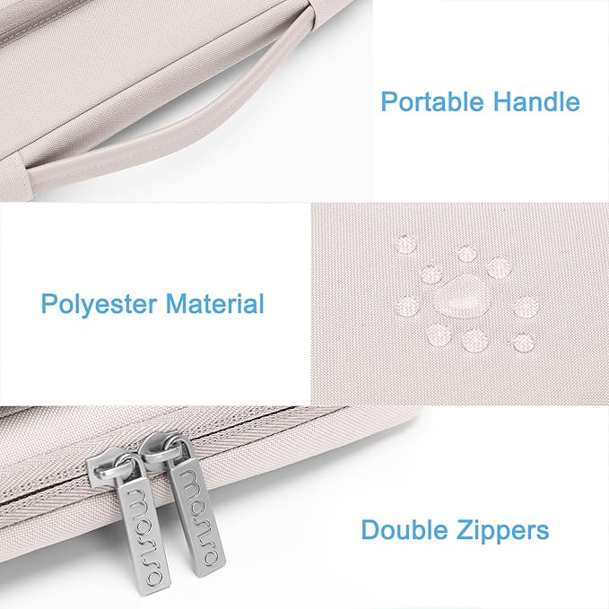 - 360 degree all around protective reinforced interior edge briefcase carrying case bag protect your laptop from any accidental dropping. Extendable handle design makes it to carry your laptop around in comfort, you can also tuck away the handle. Side opening zipper design, avoid accidental dropping of your laptop while carrying. 2 raised & 1 flapover pockets are convenient for quick-access and store cell phone, wallet, keys and other small items.