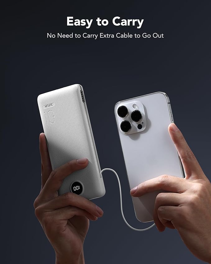 VRURC Portable Charger 10000mAh, Slim Portable Charger with Wall Plug, 22.5W USB Port Fast Charging Power Bank with Cables, 4 Outputs 2 Inputs Travel Essentials Battery for Smartphones-White (1 Pack)