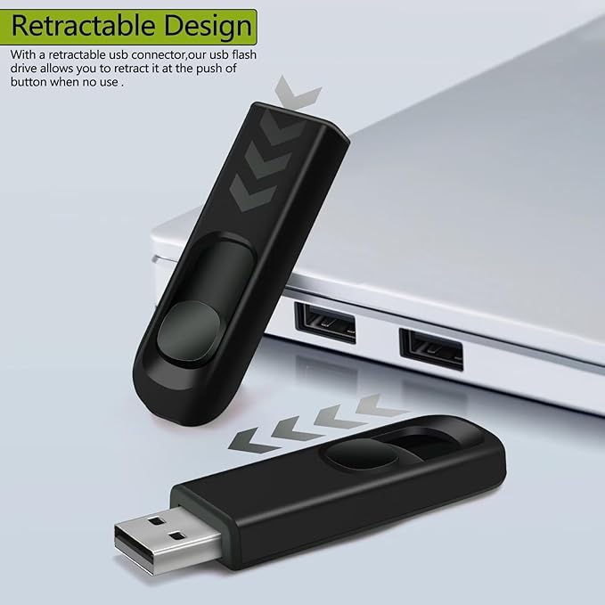- [Portable & Retract Design]With a retractable usb connector,our usb flash drive allows you to retract it at the push of button when no use There is a lanyard hole,which is convenient for you to attach with a cord with hand or just carry it in your pocket or handbag.