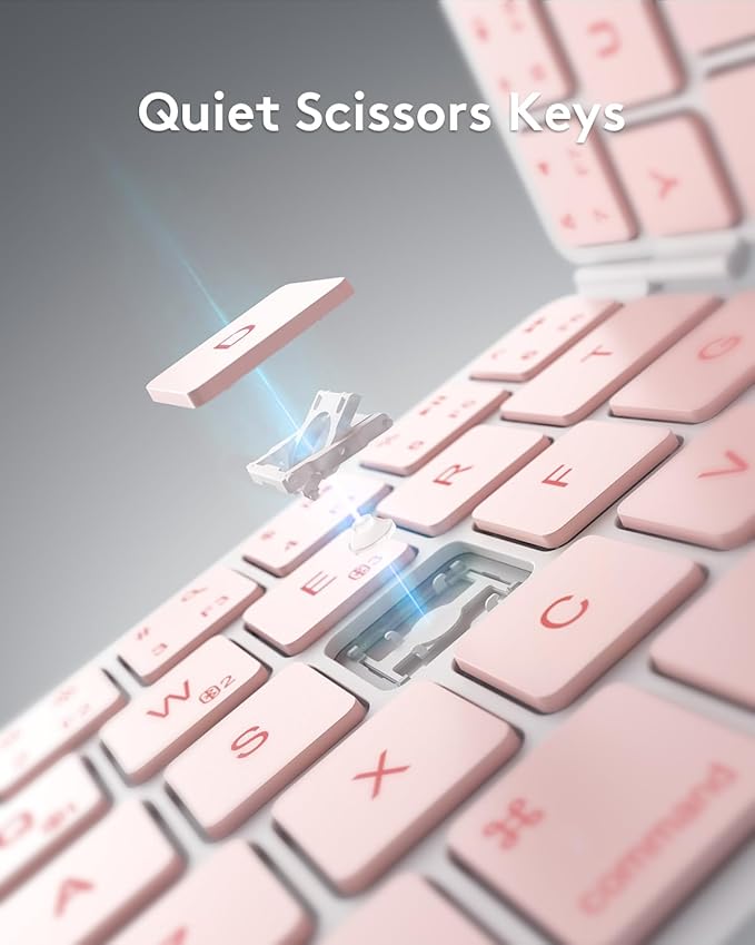 Samsers Bluetooth Foldable Keyboard - Wireless Portable Folding Keyboard, Full-Size Ultra-Slim Rechargeable Connect Up to 3 Devices for iOS, Android, Windows Phone, Tablet, Laptop - Pink