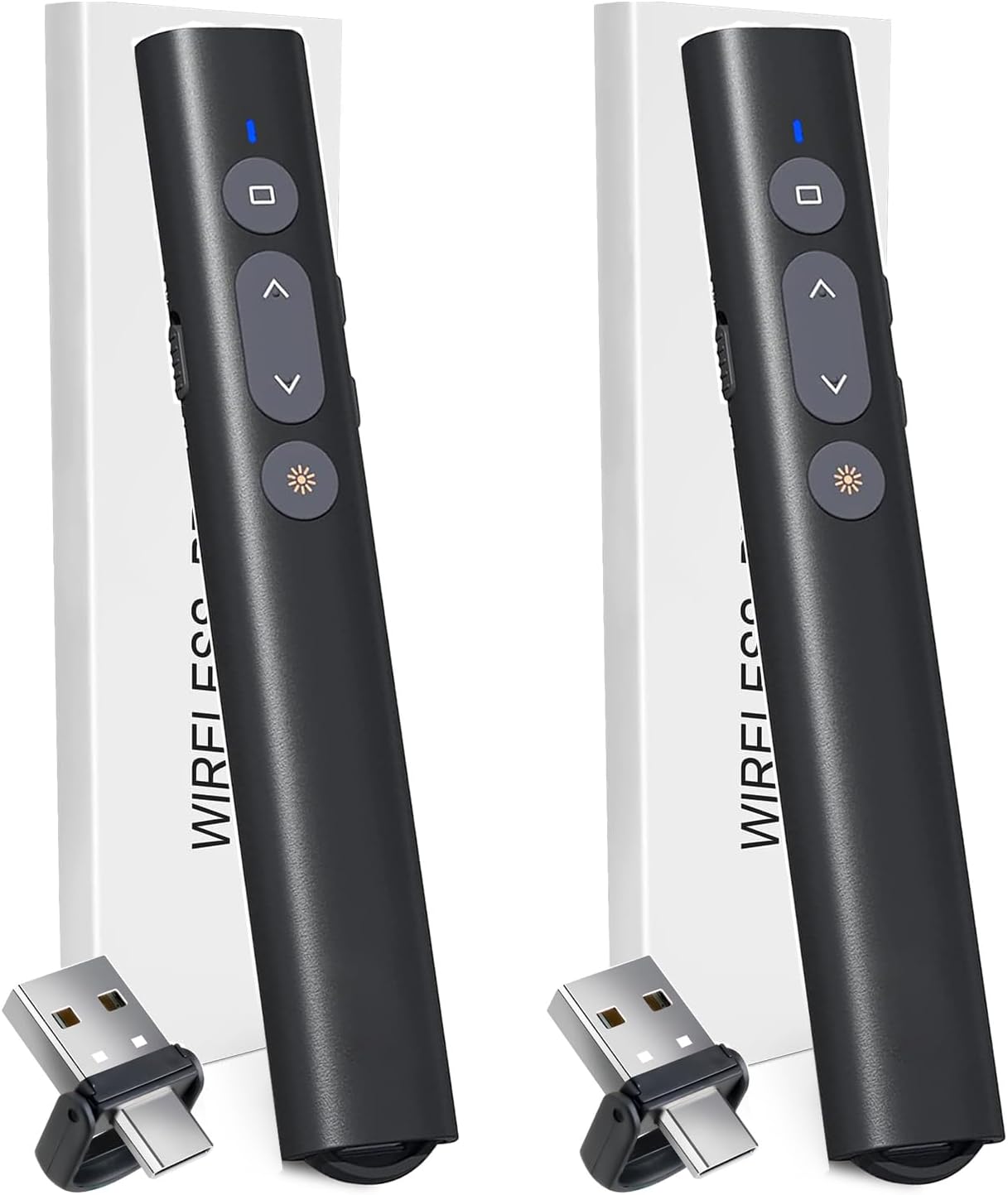 (2 Units) Presentation Clicker for PowerPoint Red Laser Pointer, USB A C Wireless Presenter Remote, Google Slide Advancer Projector Smart Board Slideshow PPT Clicker for Mac/Laptop/Computer/Office