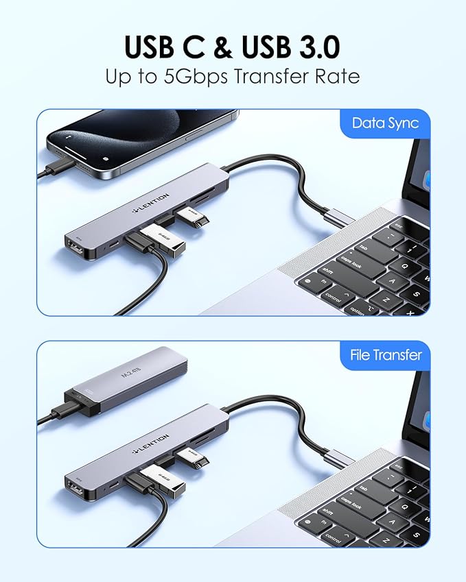 - 8-in-1 UCB C Hub Expansion: LENTION 8-in-1 USB C Multiple Hub features a 100W Type C charging port,a 4K@60Hz HDMI output port, 2 USB C Data & 2 USB 3.0 port in 5 Gpbs data transfer speed,SD/Micro SD 2.0 Card Reader can read up to 2TB memory cards.Noted: Not support Superdrive.