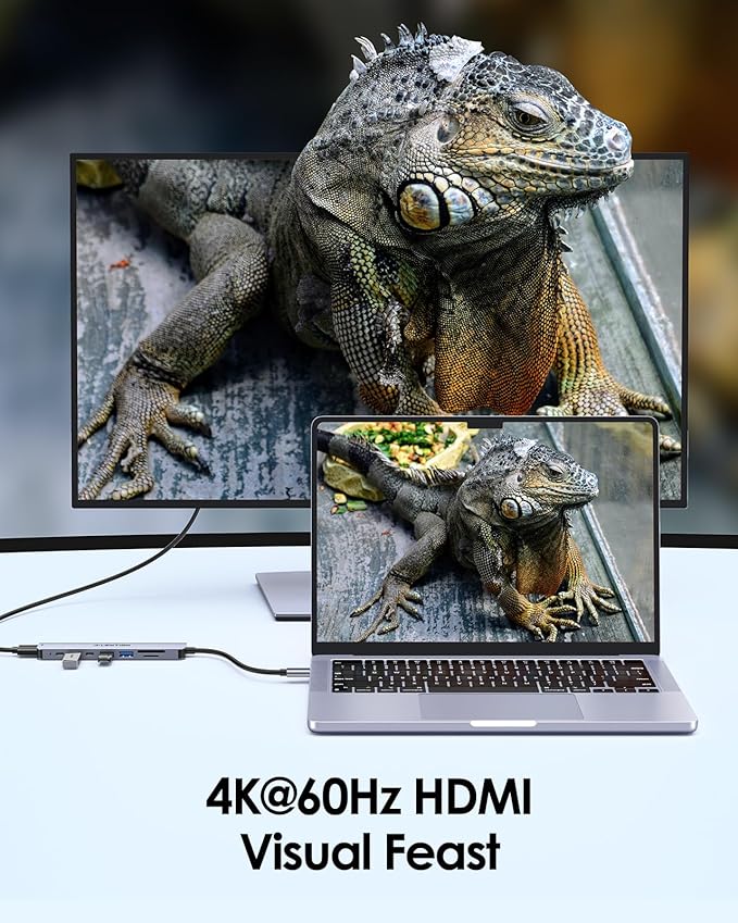 - 4K@60Hz HDMI & Dual SD Card Readers: THE HDMI Support 4K@60Hz output, whcih can mirror or extend your screen with USB C to HDMI adapter to HDTV, monitor, or projector, the SD/Micro SD 2.0 Card Reader can read up to 2TB memory cards. Note: USB-C devices should support USB Type-C DP Alt Mode.