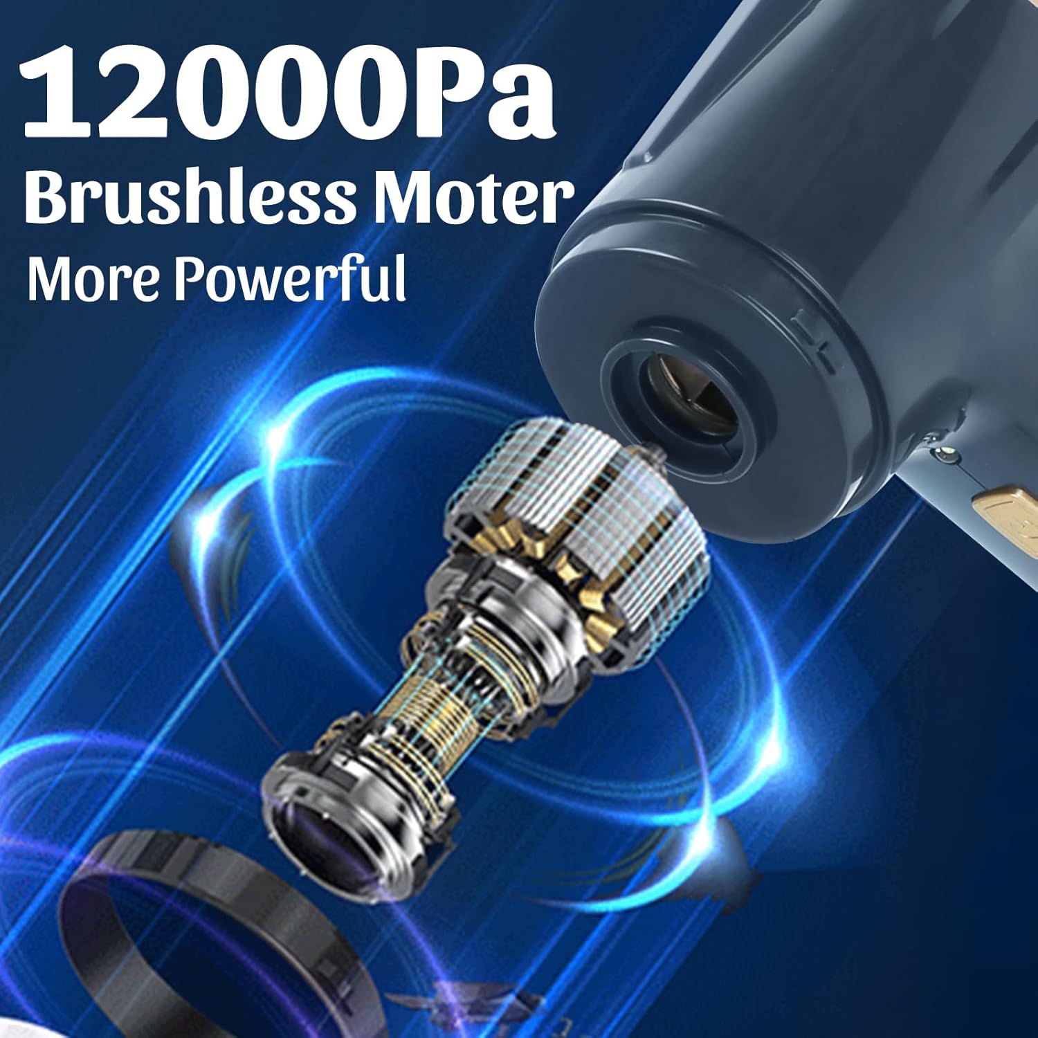 12000Pa Cordless Handheld Vacuum Cleaner, High Power Car Vacuum and Air Duster 2-in-1, Low Decibel Brushless Mini Vacuum with LED Light and Multi-Nozzles, for Desk, Sewing Machine, Computer, Keyboard