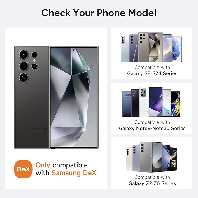 - Widely Compatible: Portable Display Suitable for full-function type-c and HDMI interfaces, the monitor is compatible with Samsung mobile phones (Galaxy S8/S9/S10/S20/S21/S22/S23 series; Galaxy Note8/9/10/20 series; Galaxy Fold, Z Fold 2/3/4), Android phones, MINI PC, laptops, PC, Mac, Surface,, PS4/5, Xbox, Nintendo Switch, Samsung Dex, Steam Deck, etc. These can be used with the monitor via our original type-c or HDMI cable. Other mobile phones without a full-function Type-c port require an adapter to connect (the adapter is not included in the box)
