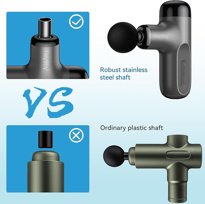 - 【Personalized Wellness】HeyChy massager gun provides 5 different speed 4 different attachments, including 1 heating massage head that can heat up to 131°F (55°C) for deeper muscle relaxation. You could freely choose 5 speeds and 4 attachments depending on the levels of your muscle soreness or pain by pressing the power button.
