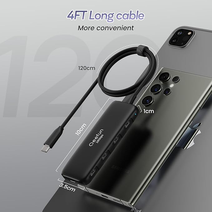 Qeefun USB C Hub 10Gbps, 4 Ports USB-C 3.2 Data Splitter, USB 3.2 Gen 2 Adapter with 100W Power Charging Port, USBC Extender for iPad Pro, iPhone 15, MacBook Air/Pro M2 M1, PC, Laptops and More