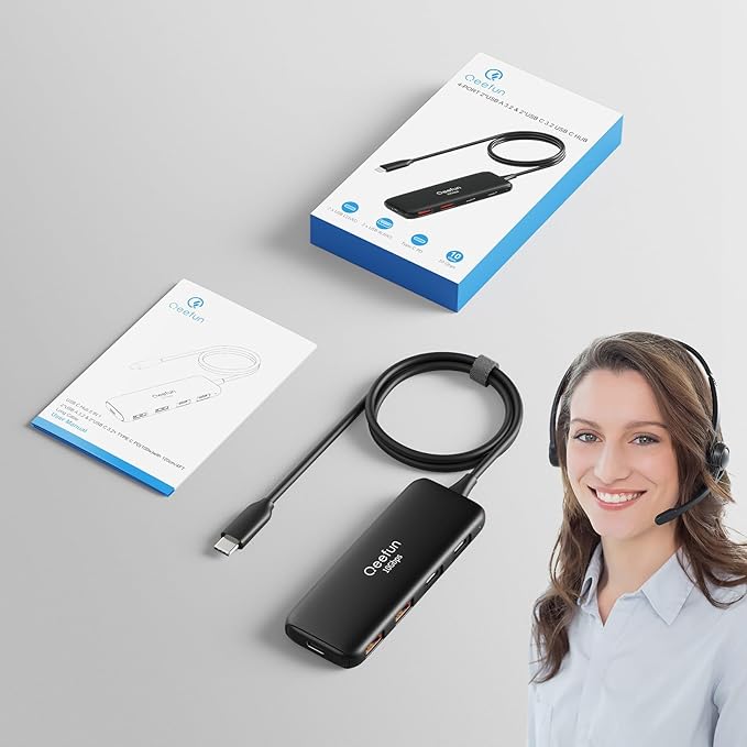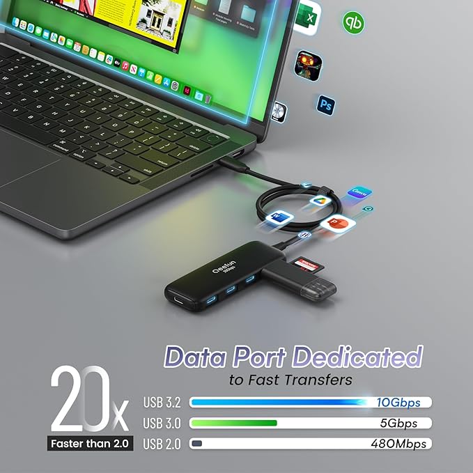 - 10Gbps Data Transfer: Qeefun 5 in 1 USB C hub is equipped with 4 USB C 3.2 Data ports and 1 PD Charging port. The USB 3.2 Hub supports a max file transfer speed of 10Gbps. That's fast enough to transfer a 10 GB file in just 8.2 seconds.
