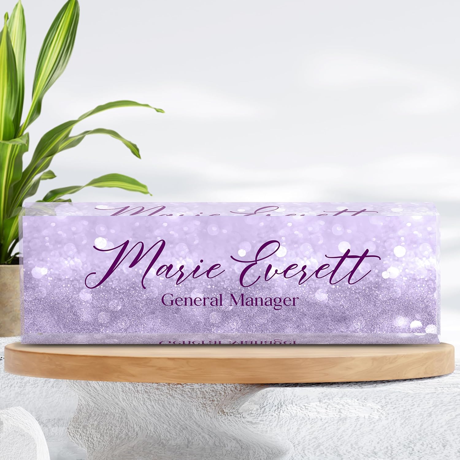 Custom Name Plate for Desk | Personalized Desk Name Plate | Personalized Boss Employee Appreciation Gifts | Acrylic Name Plate Office Desk Accessories (A-Purple Quartz)