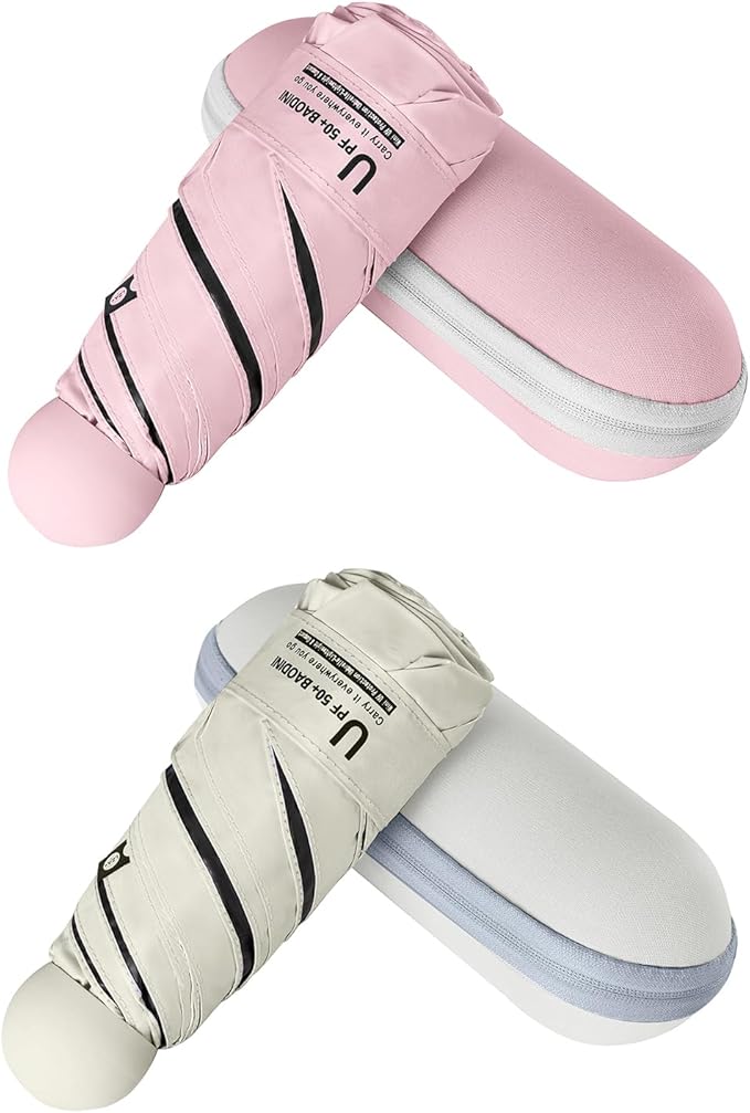 BAODINI Travel Essentials Mini Umbrella for Purse With Case Small Compact UV Sun Protection Lightweight Tiny Pocket Manual Open Close Umbrella for Women Kids and Men Fit Purse Backpack