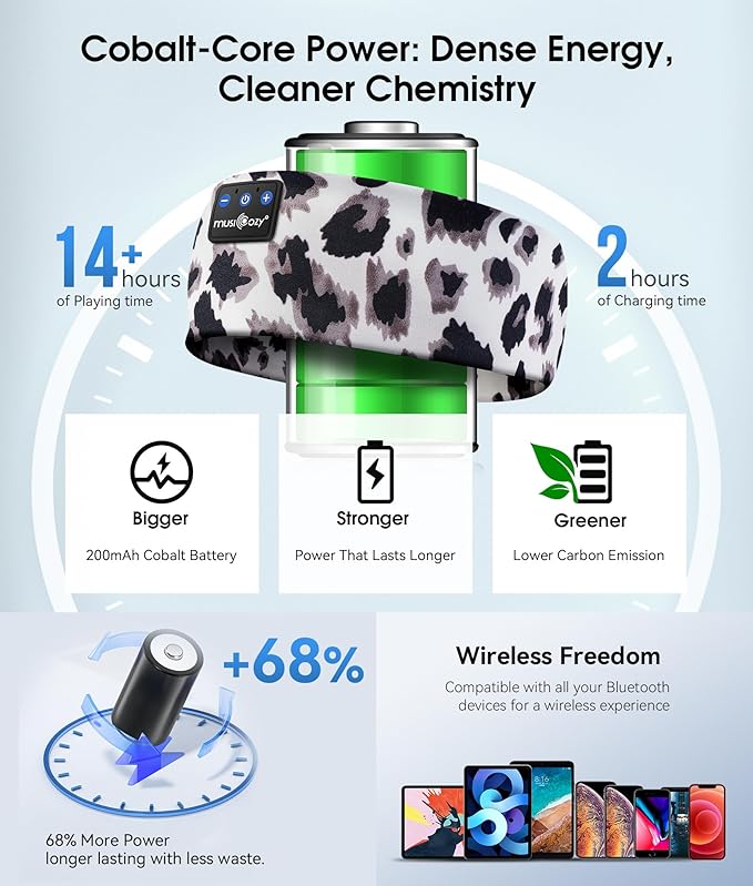 - BLUETOOTH 5.4 HEADPHONES & SPORTS HEADBAND - MUSICOZY Headband is a versatile and stylish accessory that allows you to listen to your favorite music while also protecting your hair and sweat from disturbing your listening experience. The headband is designed for various activities such as travel, sleep, workout, running, yoga, and even listening to audio books. With its wireless Bluetooth 5.4 technology, you can easily pair it with your smartphones and most other Bluetooth compatible devices.