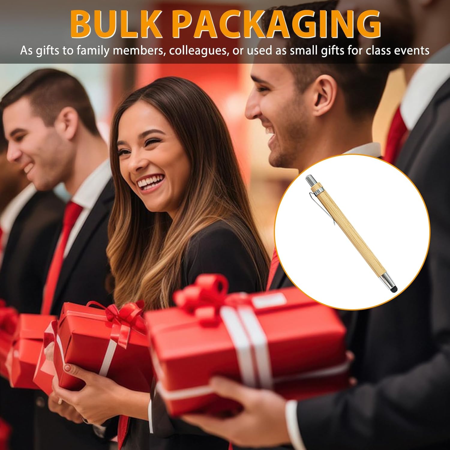 100pcs Bamboo Pens Bulk 2-in-1 Stylus Tip Wooden Bamboo Pens Engraving Wooden Ballpoint Pen Customizable Gift Pen Bulk